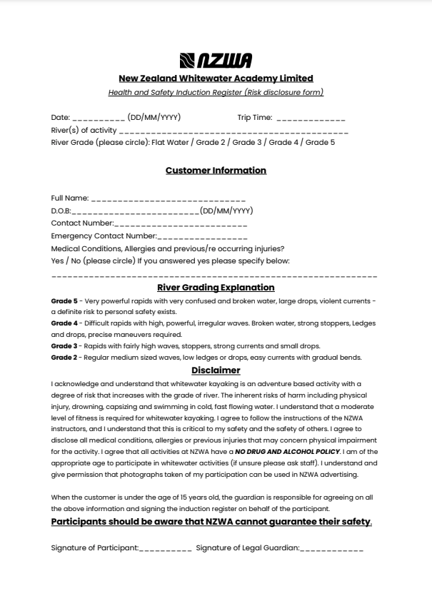 PARTICIPANTS SHOULD BE AWARE THAT NZWA CANNOT GUARANTEE YOUR SAFETY.